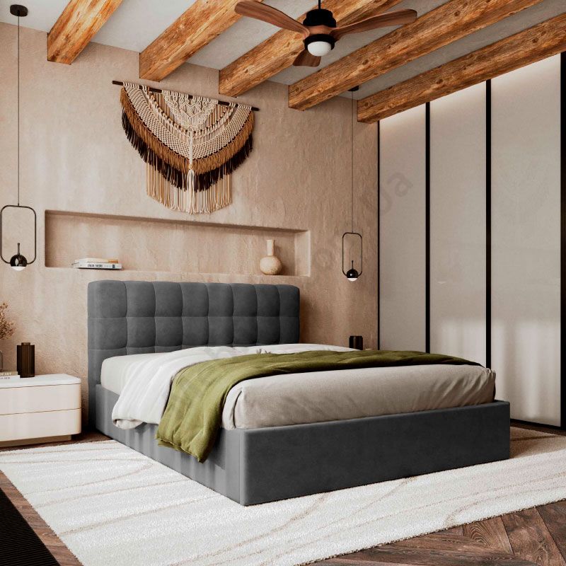 М’яке ліжко з підйомним механізмом та ламелями на металевому каркасі.