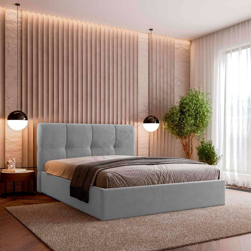 М’яке ліжко з підйомним механізмом та ламелями на металевому каркасі.