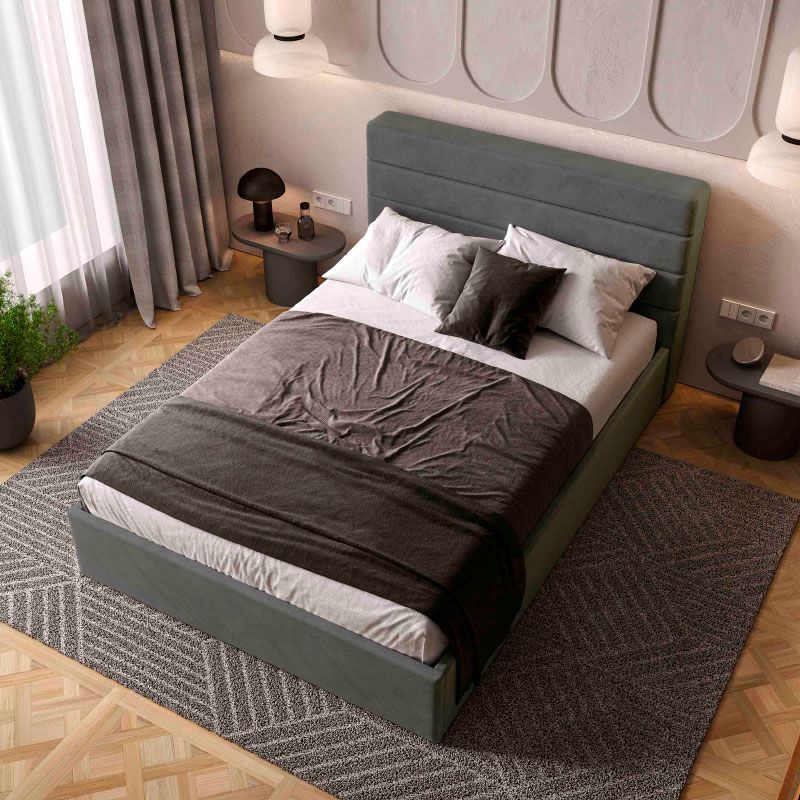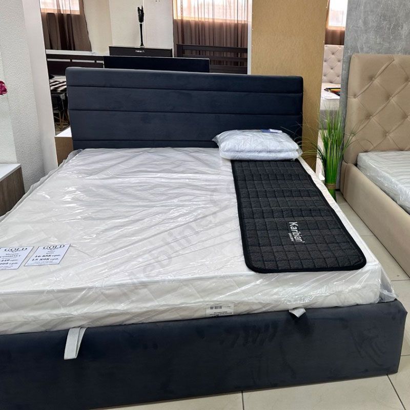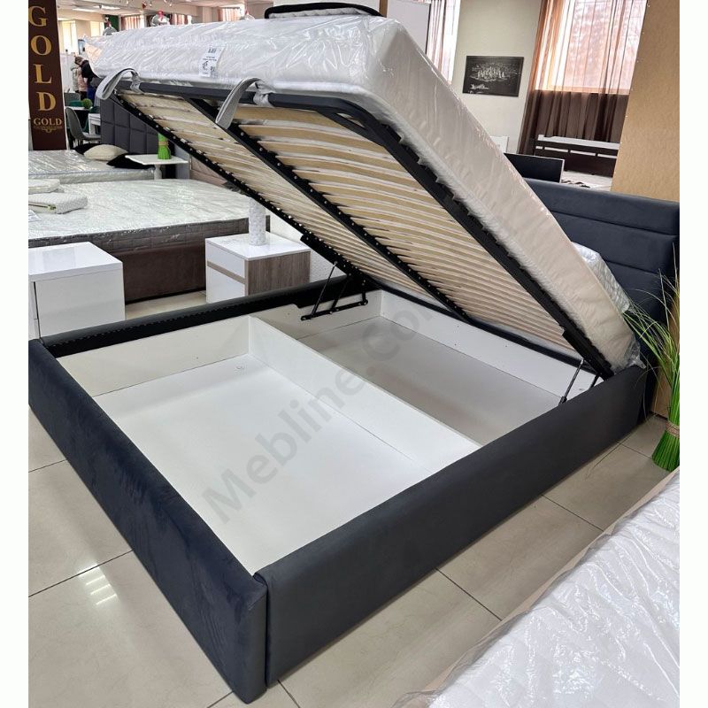 М’яке ліжко з підйомним механізмом та ламелями на металевому каркасі.