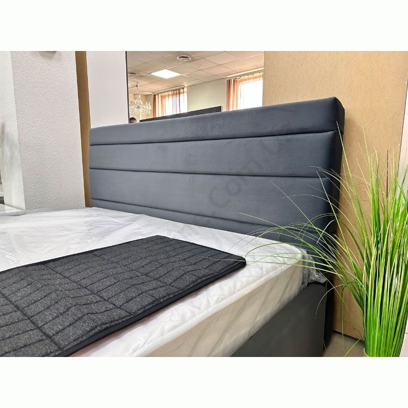 Оббивка узголів’я задекороване горизонтальними лініями.