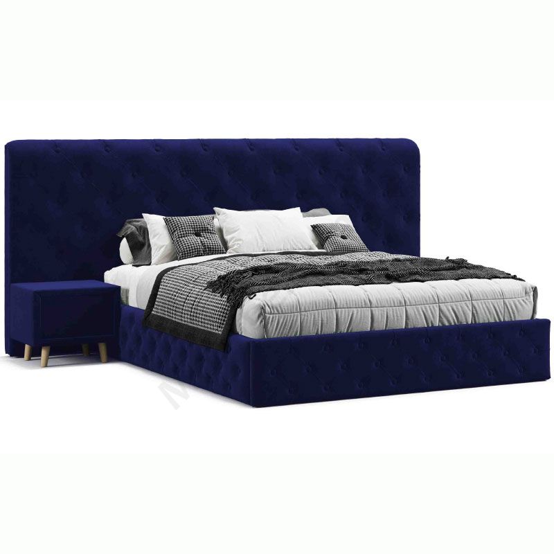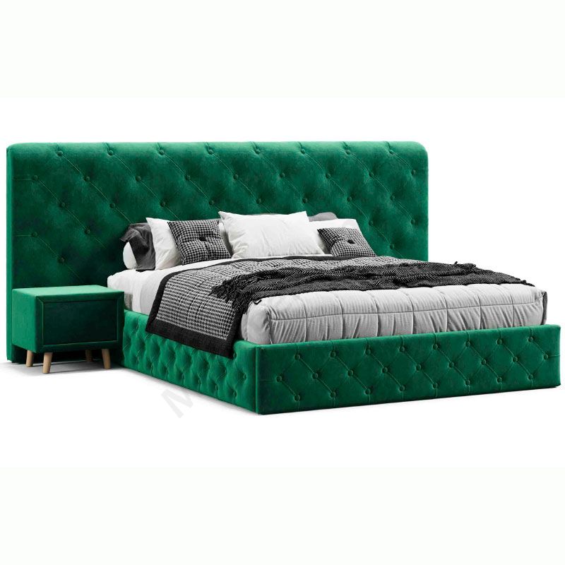 М’яке ліжко з підйомним механізмом та двома приліжковими тумбами.