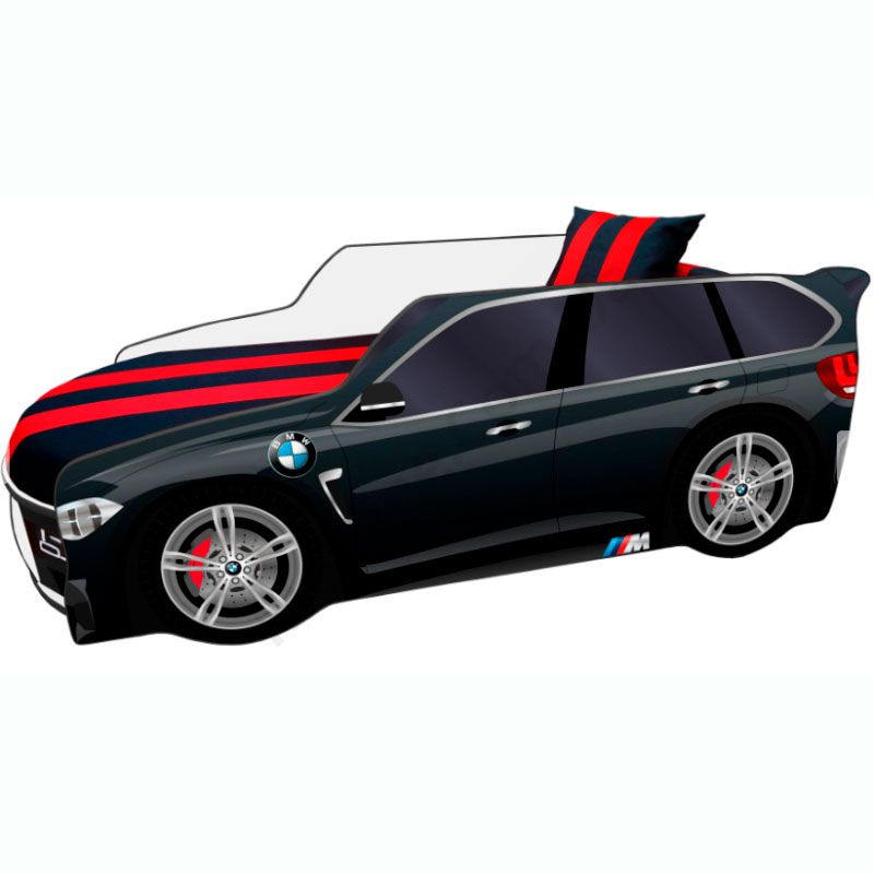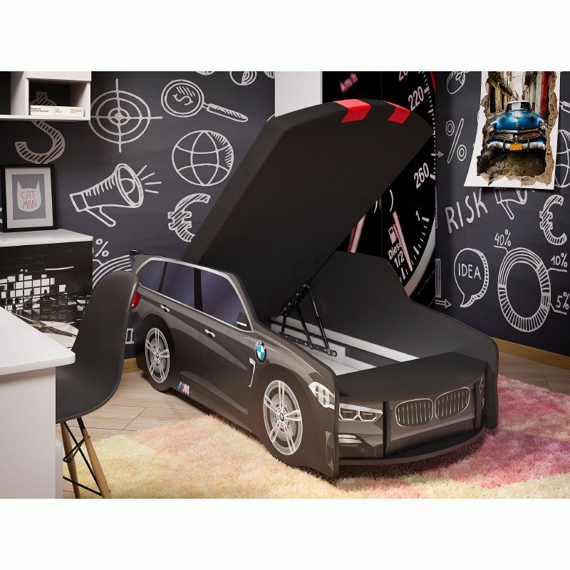 Дитяче ліжко з підйомним механізмом у вигляді машини BMW чорного кольору.