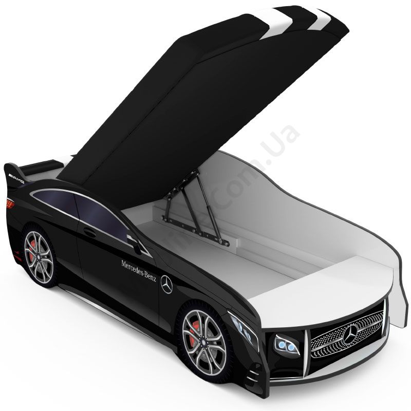 Дитяче ліжко з підйомним механізмом у вигляді машини Mercedes чорного кольору.