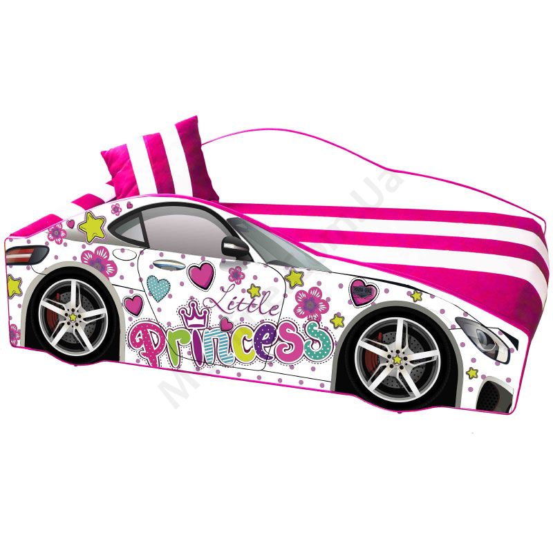 Дитяче ліжко з підйомним механізмом у вигляді машини Princess білого кольору.