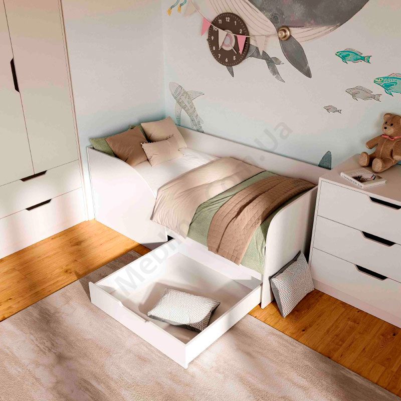 - Під ліжком висувна шухляда для зберігання білизни.