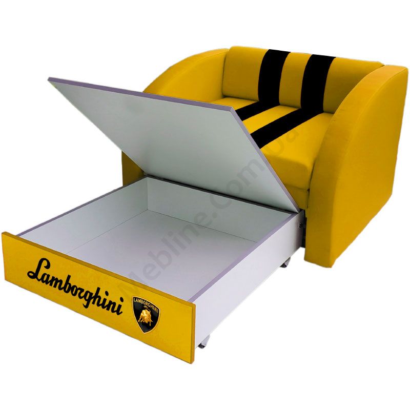 Крісло-ліжко з м’якою оббивкою та шухлядою для зберігання.