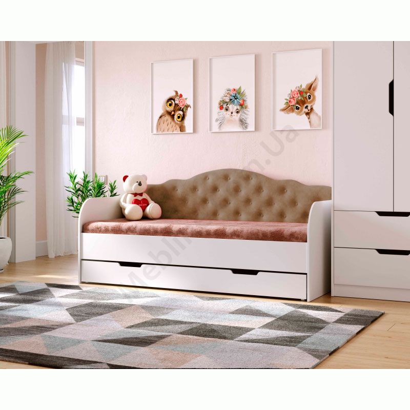 Дитяче ліжко софа з шухлядою для зберігання та м‘якою спинкою.