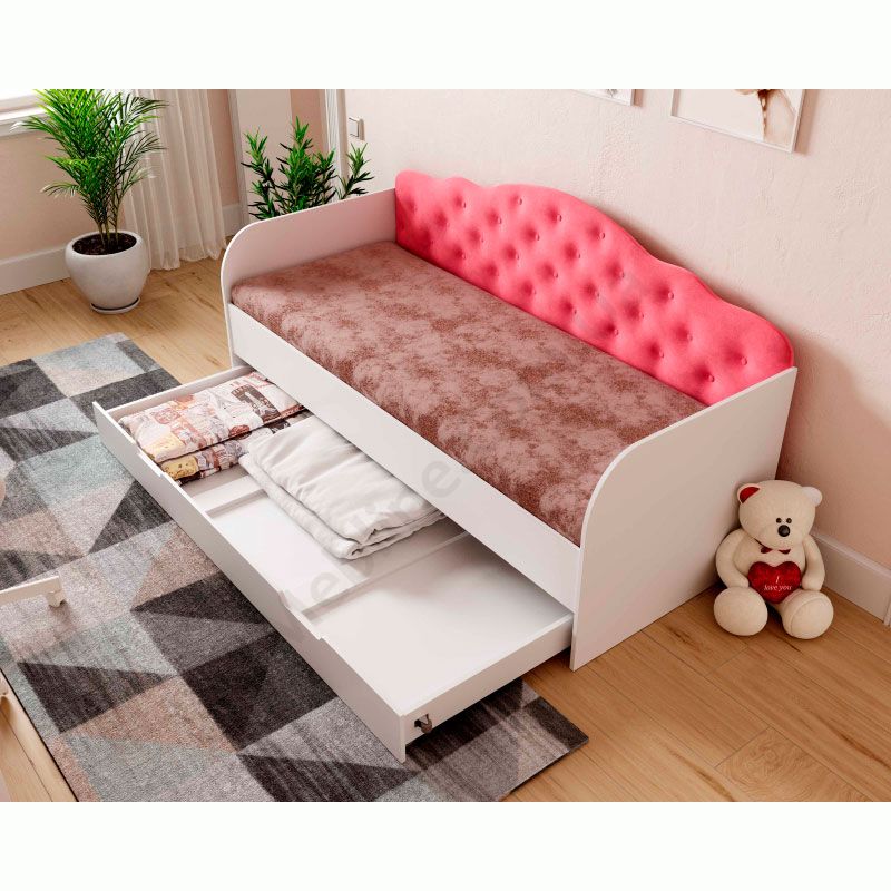 Дитяче ліжко софа з шухлядою для зберігання та м‘якою спинкою.