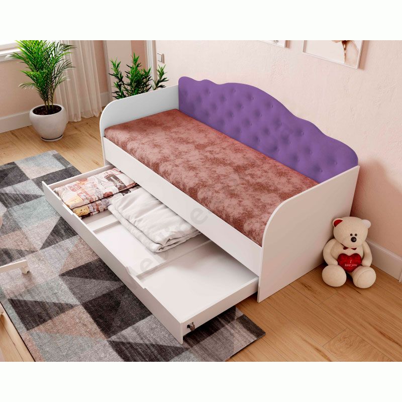 Дитяче ліжко софа з шухлядою для зберігання та м‘якою спинкою.
