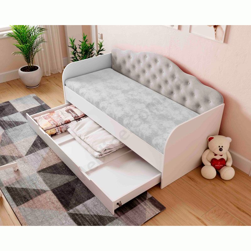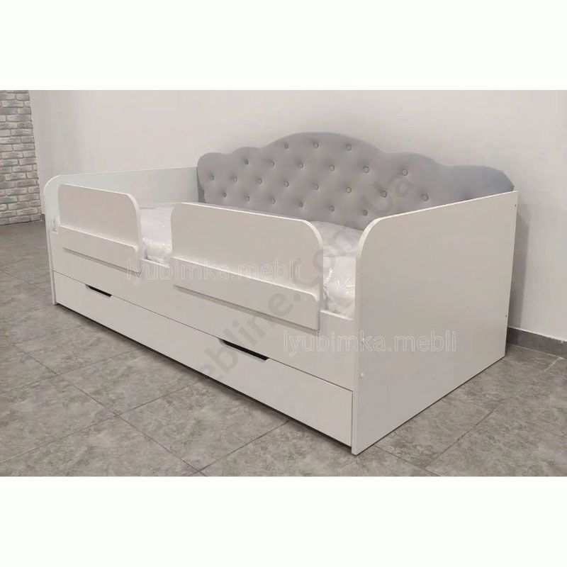 Дитяче ліжко софа з шухлядою для зберігання та м‘якою спинкою.
