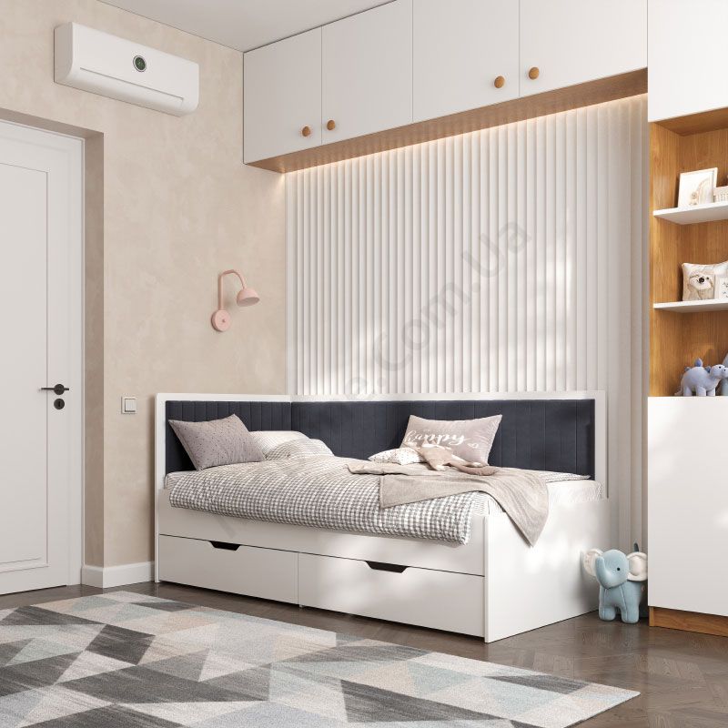 Під ліжком дві висувні шухляди для зберігання білизни.