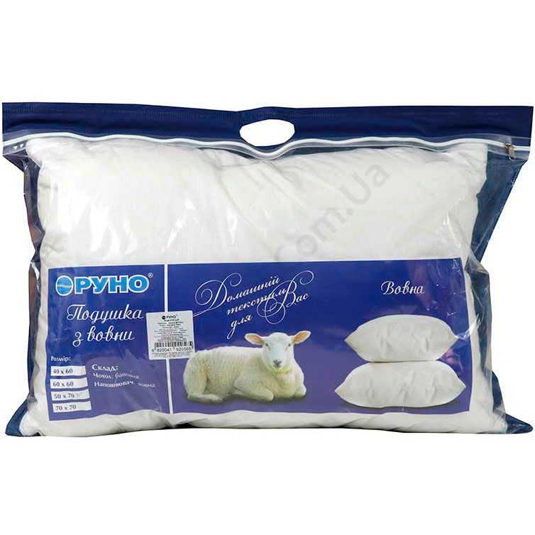 - Подушка наповнена овечою вовною (80% вовна, 20% з’єднувальний компонент поліестер).