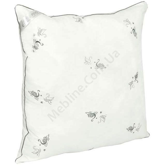 - Подушка наповнена гіпоалергенним замінником лебединого пуху (100% поліестер).