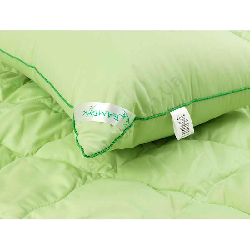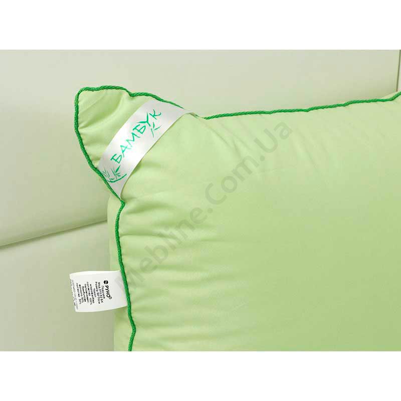 • Подушка наповнена бамбуковим волокном (50% бамбук, 50% поліестер).