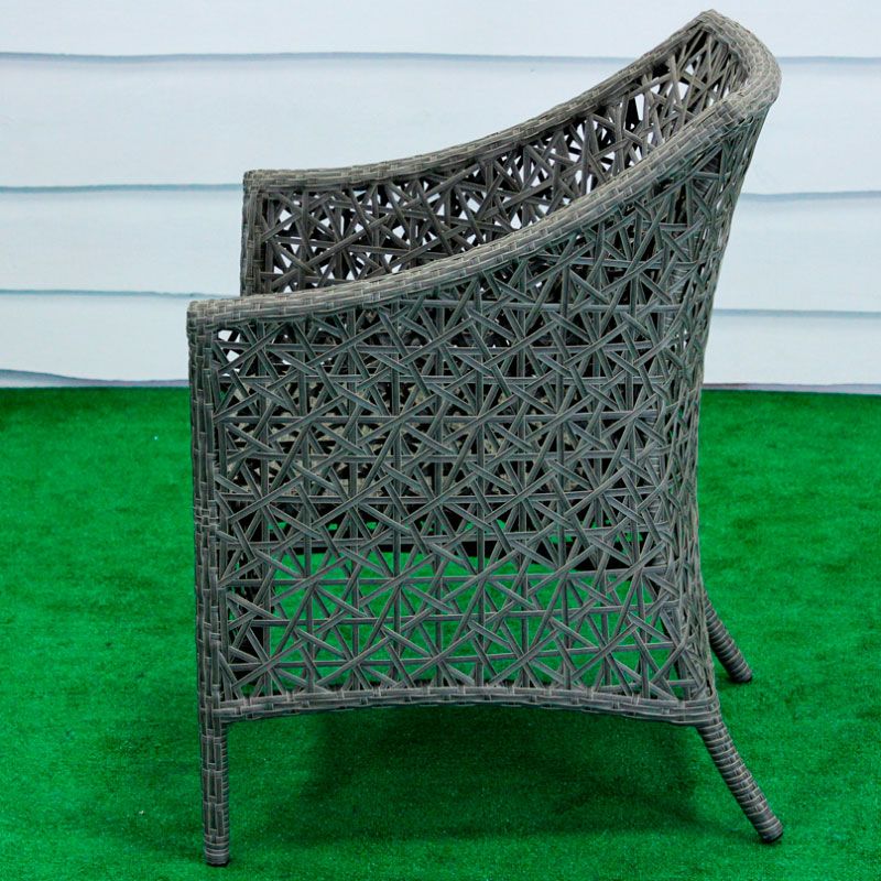Плетене крісло зі штучного ротанга на металевій основі.