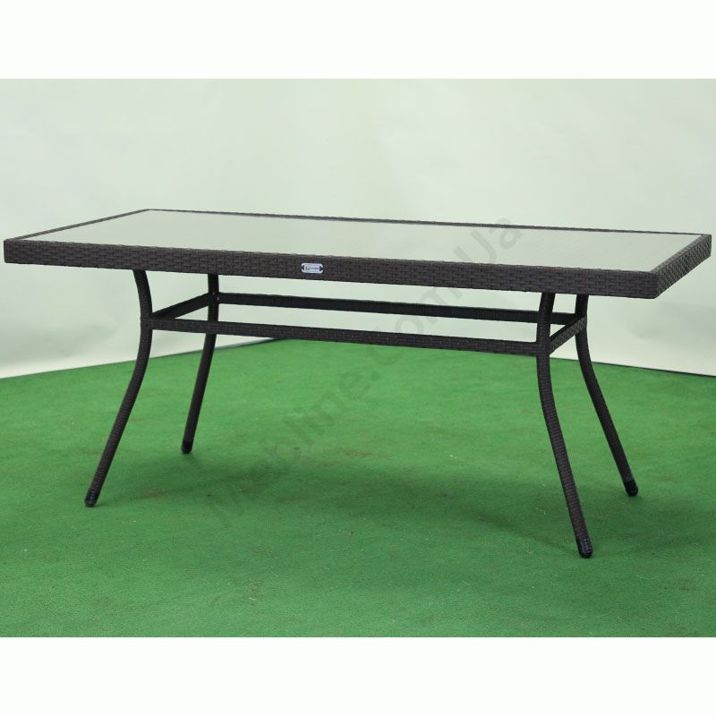 Обідній плетений стіл зі штучного ротангу зі скляною прямою стільницею.