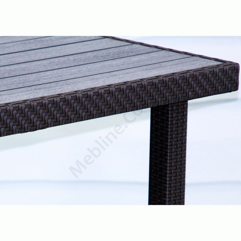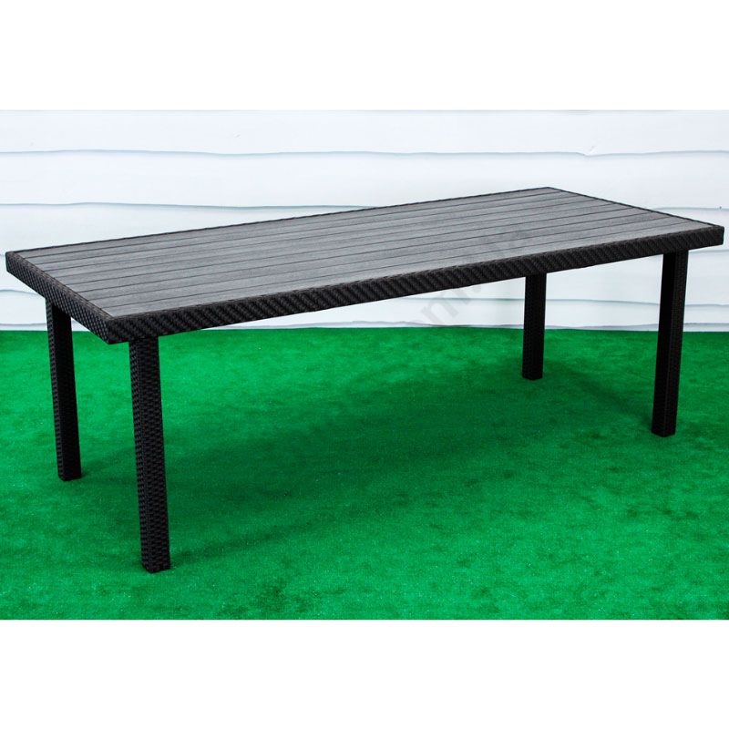 Обідній плетений стіл зі штучного ротангу з прямокутною стільницею.