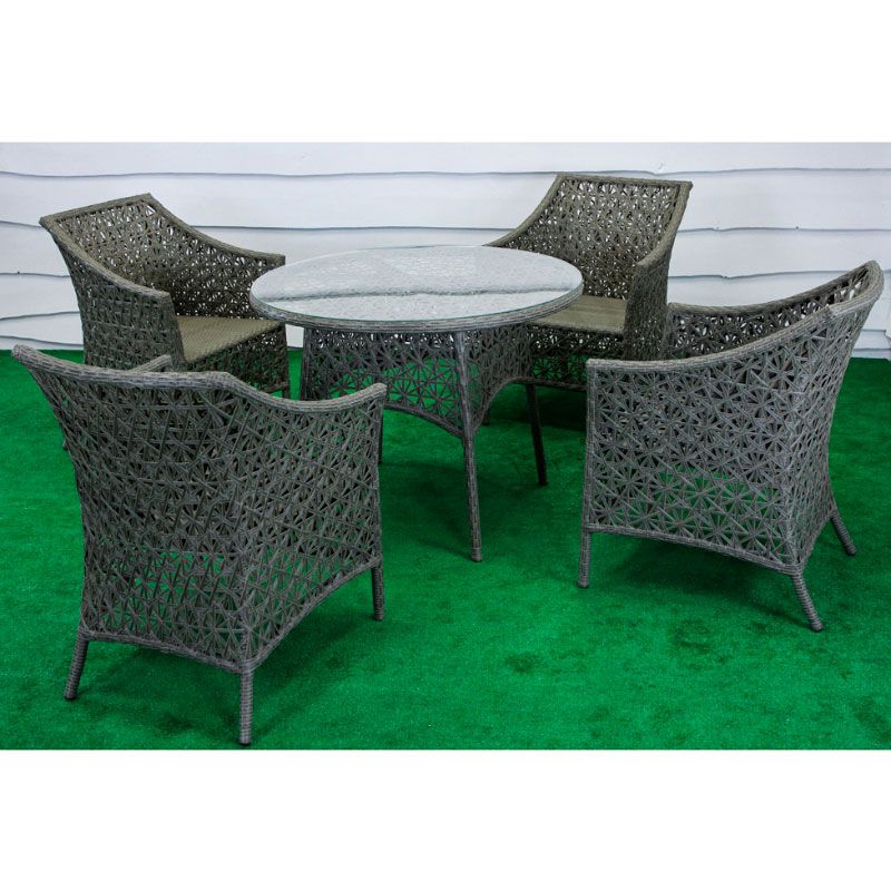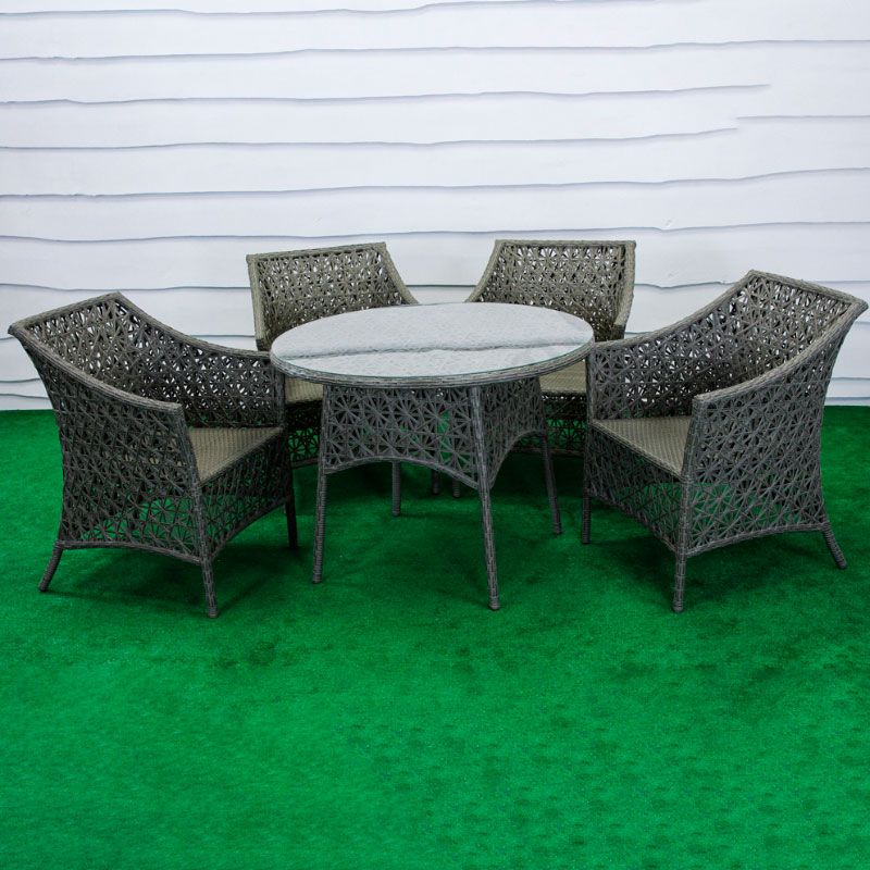 Обідній плетений комплект зі столом та чотирма кріслами.