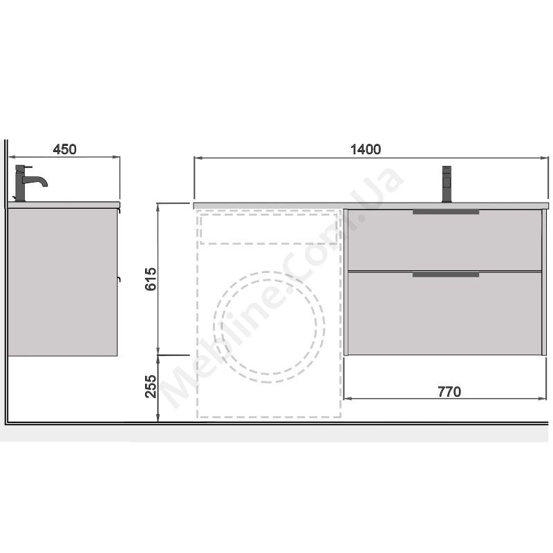 Тумба для ванної з умивальником та крилом над пральною машиною.