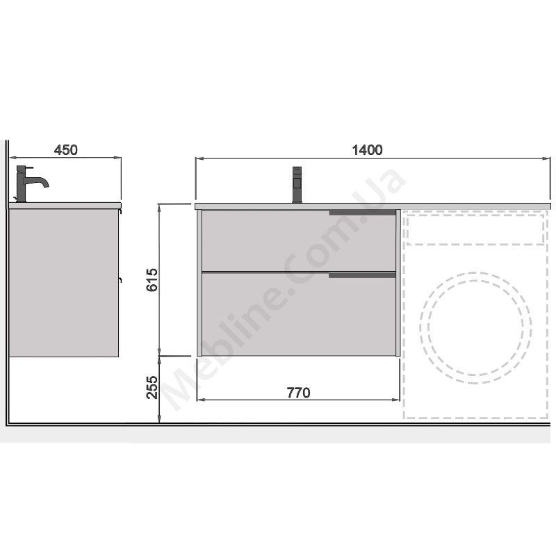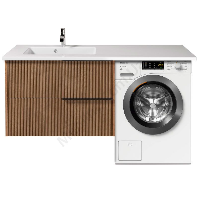 Підвісна тумба для ванної з умивальником та крилом над пральною машиною.