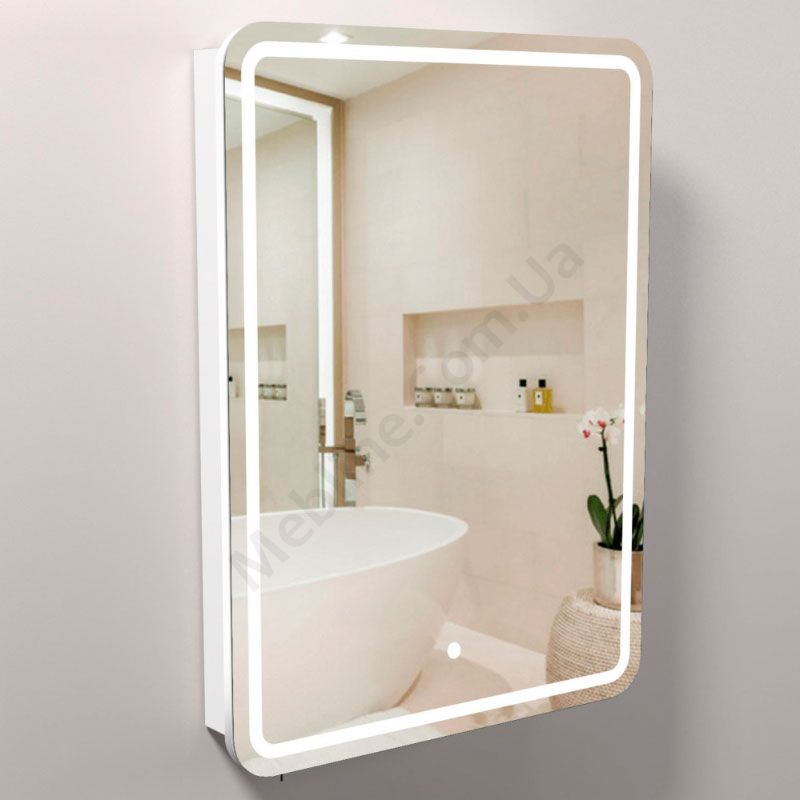 Навісна дзеркальна шафка для ванної з підсвічуванням.