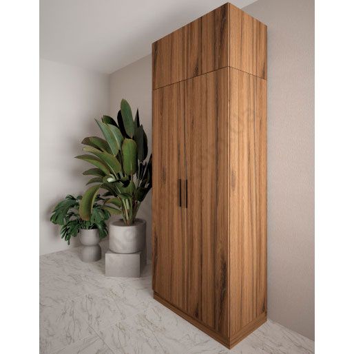 Дводверна розпашна шафа зі штангою для одягу та полицями.