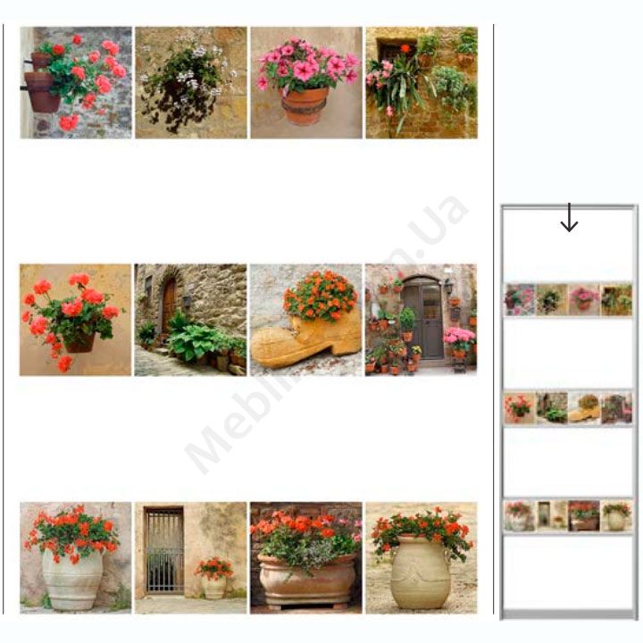 Чотиридверна шафа-купе шириною 260 см, глибиною 45 см, висотою 210, 220 чи 240 см.
