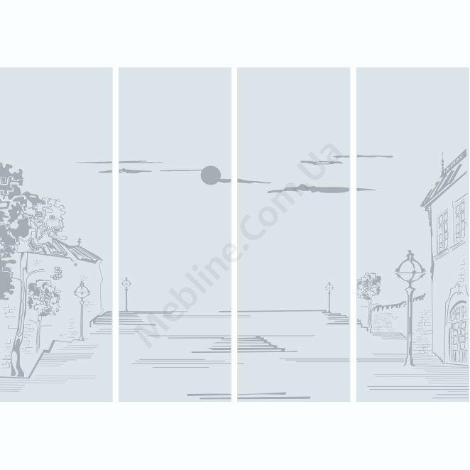 Чотиридверна шафа-купе шириною 240 см, глибиною 45 см, висотою 210, 220 чи 240 см.