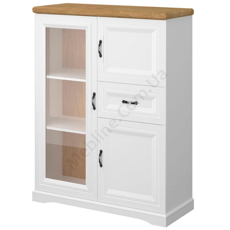 Низька вітрина з дверцятами та висувною шухлядою.