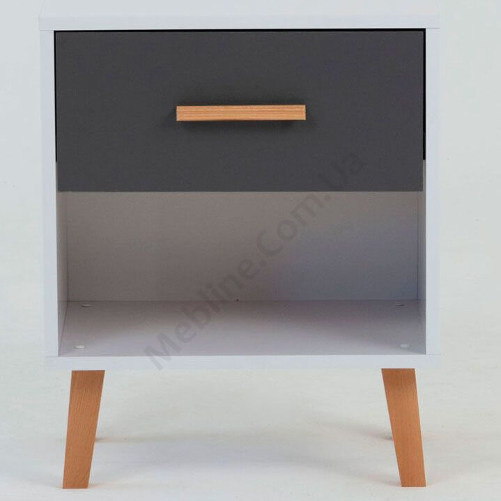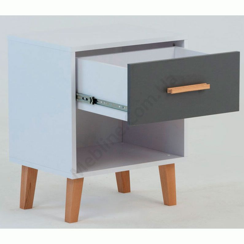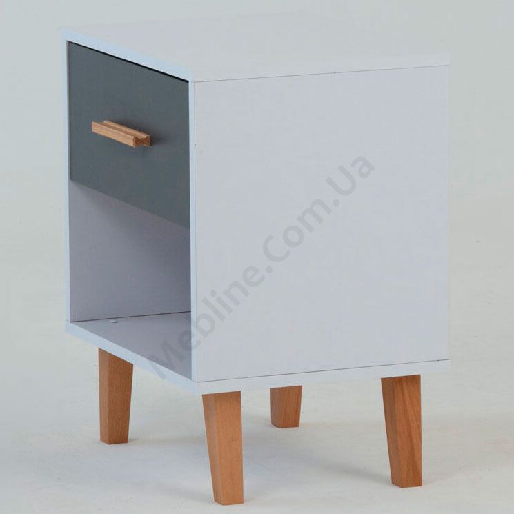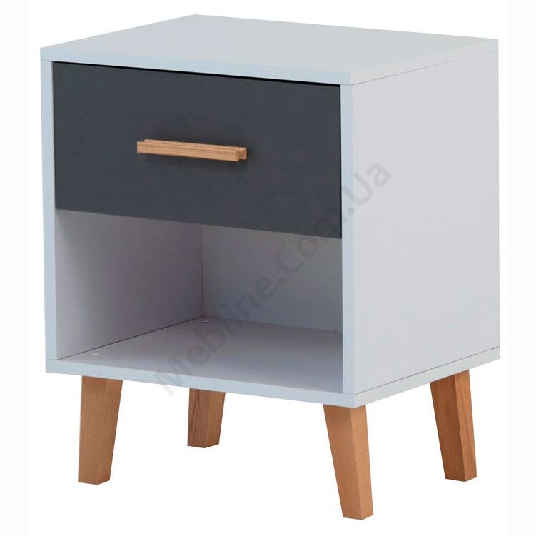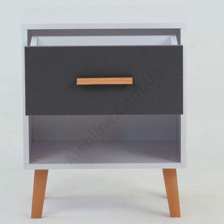 Приліжкова тумба на ніжках з висувною шухлядою та відкритою полицею.