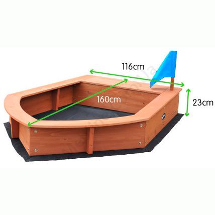Дерев’яна дитяча пісочниця у вигляді човника.