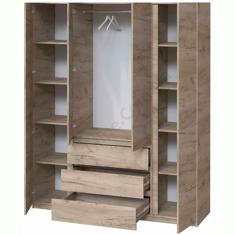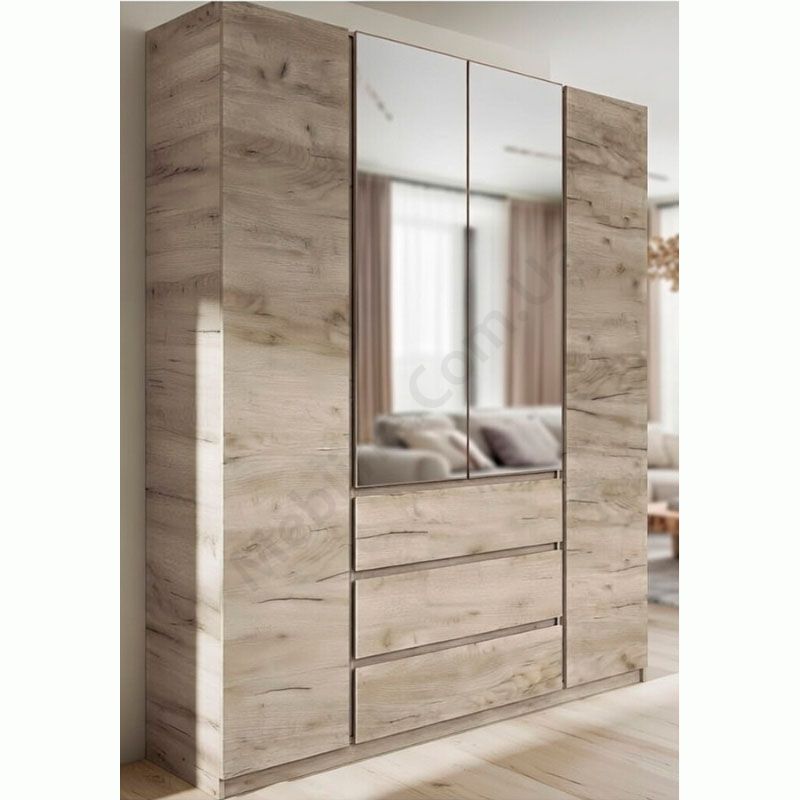 Чотиристулкова шафа з висувними шухлядами та дзеркалами.