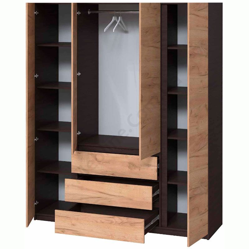 Чотиристулкова шафа з висувними шухлядами та дзеркалами.