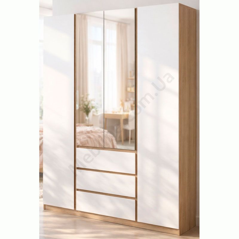 Чотиристулкова шафа з висувними шухлядами та дзеркалами.
