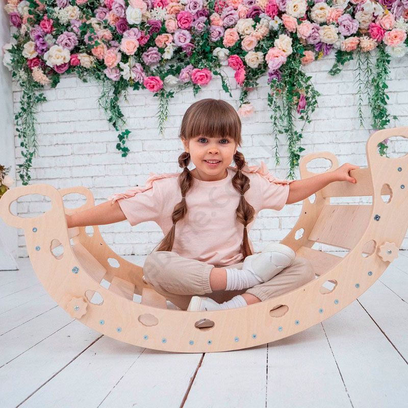 Балансувальна гойдалка у вигляді арки натурального кольору.