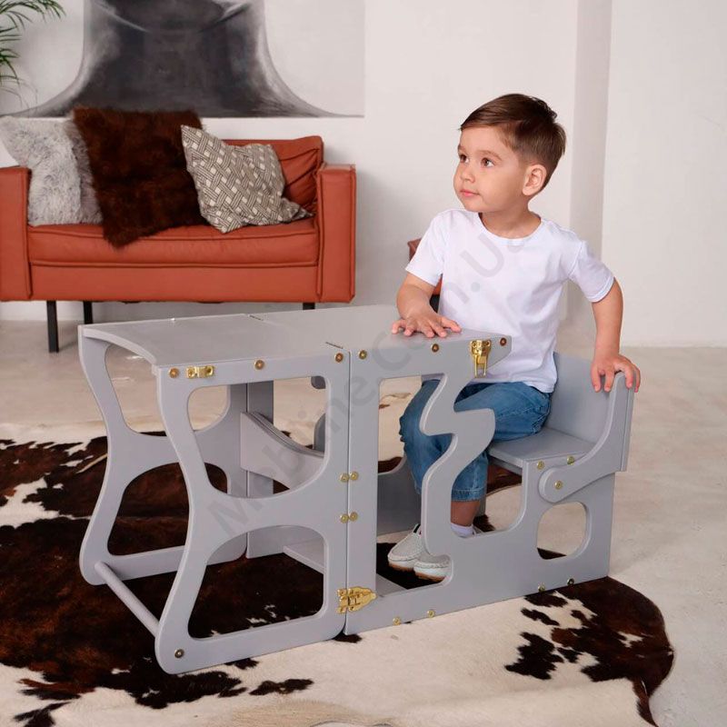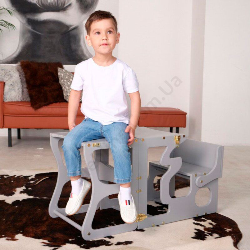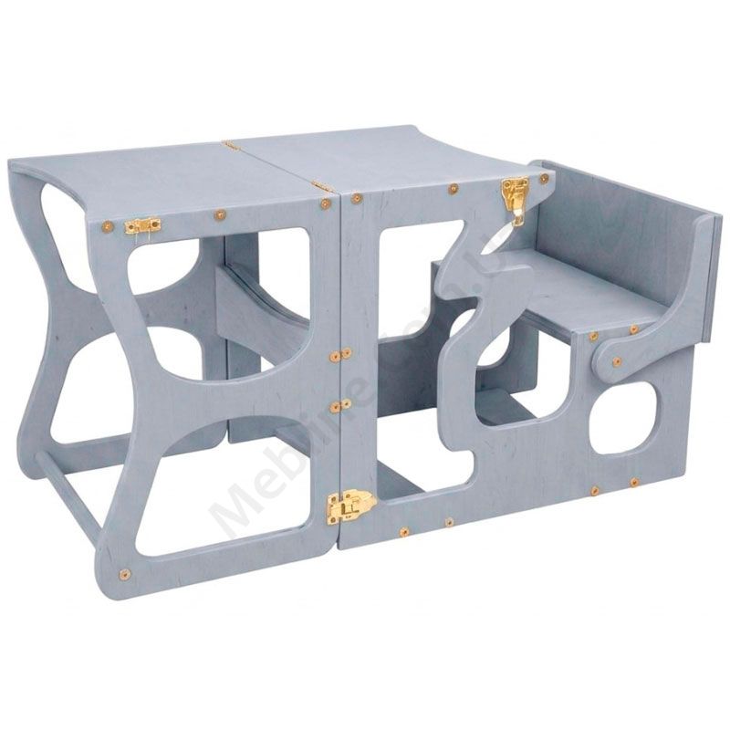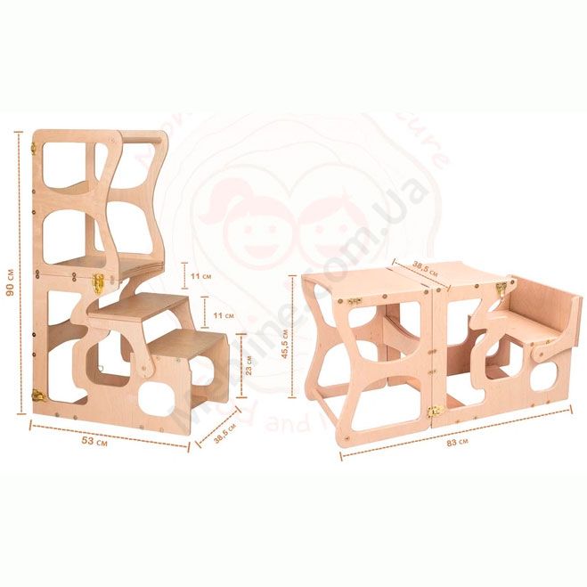 - Столик з лавкою може трансформуватись у стілець-драбину.