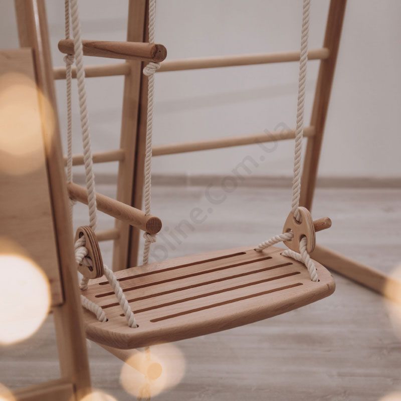 Навісна дерев’яна дитяча гойдалка для дому.