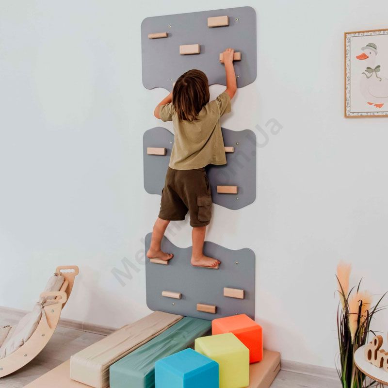 • У міру дорослішання дитини можна збільшувати висоту скеледрому, додаючи панелі.