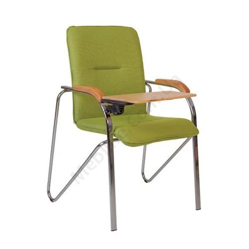 Крісло для конференцій в класичному стилі на хромованій базі з дерев’яними накладками на підлокітники та дерев’яним столиком.