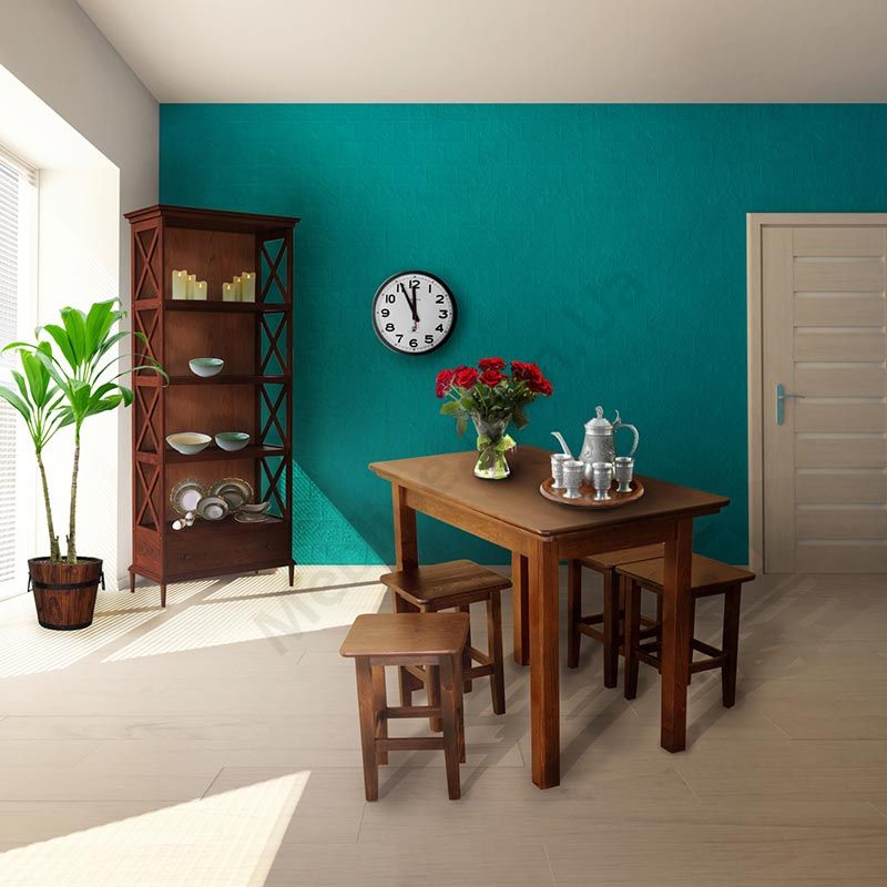 Прямокутний стіл з натурального дерева на прямих ніжках.