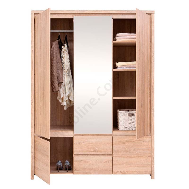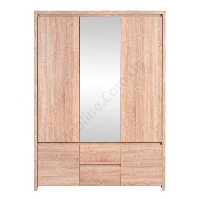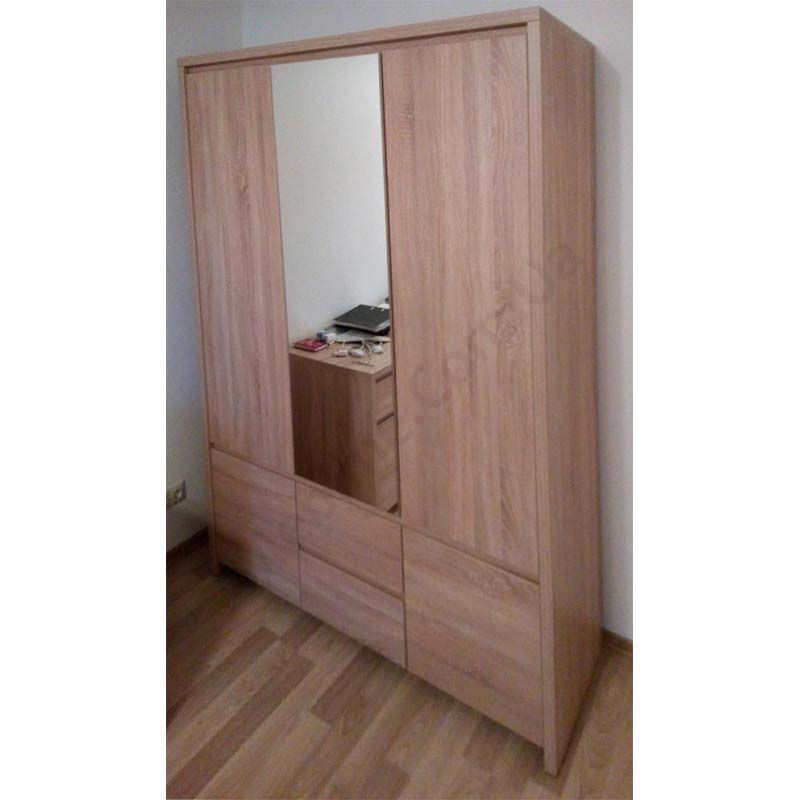 Тридверна платтяна шафа з дзеркалом та висувними шухлядами.
