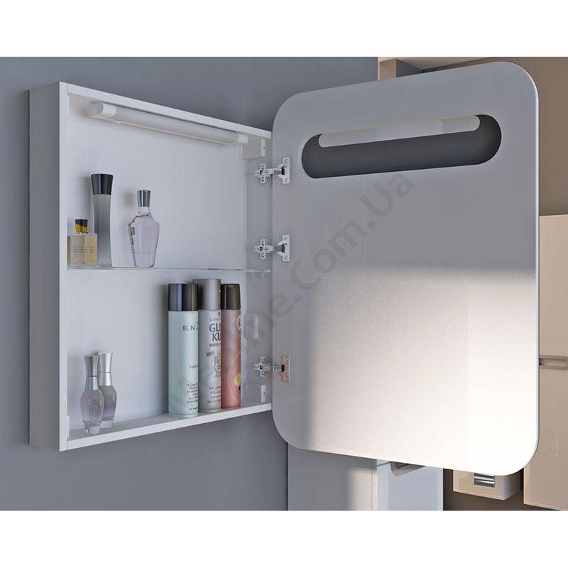 - Дверцята відкриваються зліва направо, усередині шафки знаходяться скляні полиці.