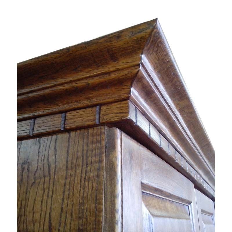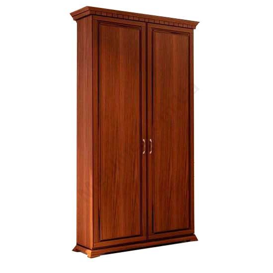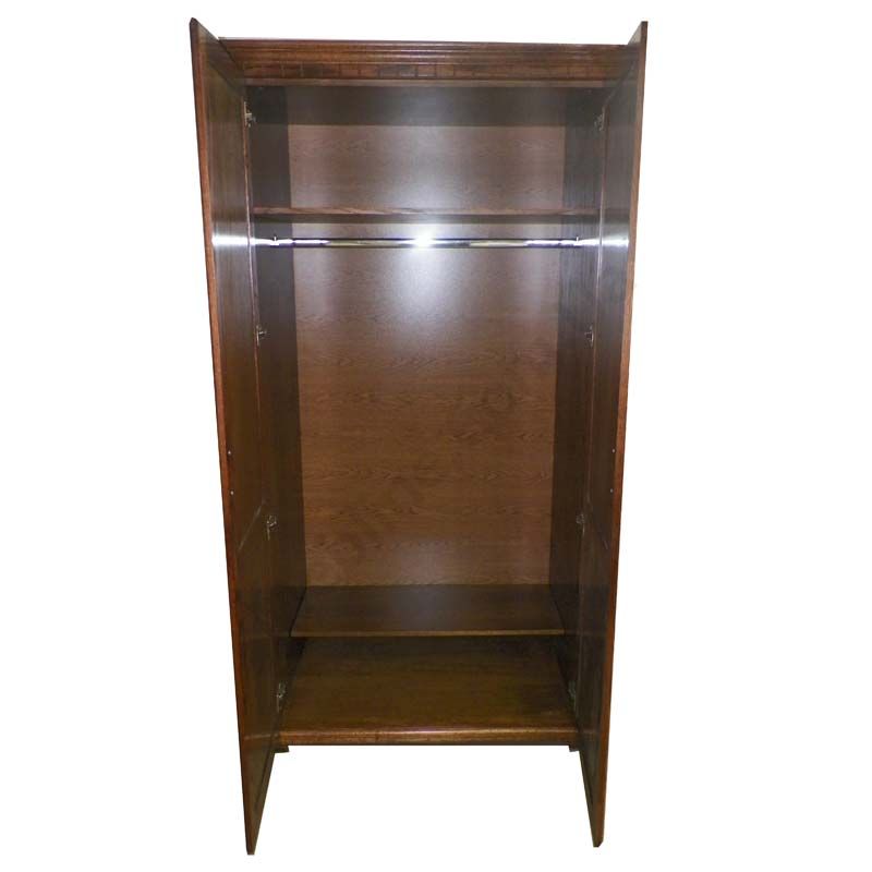 Дерев’яна дводверна шафа зі штангою для одягу.