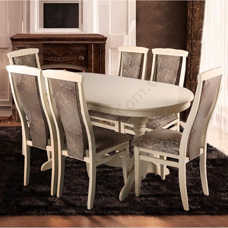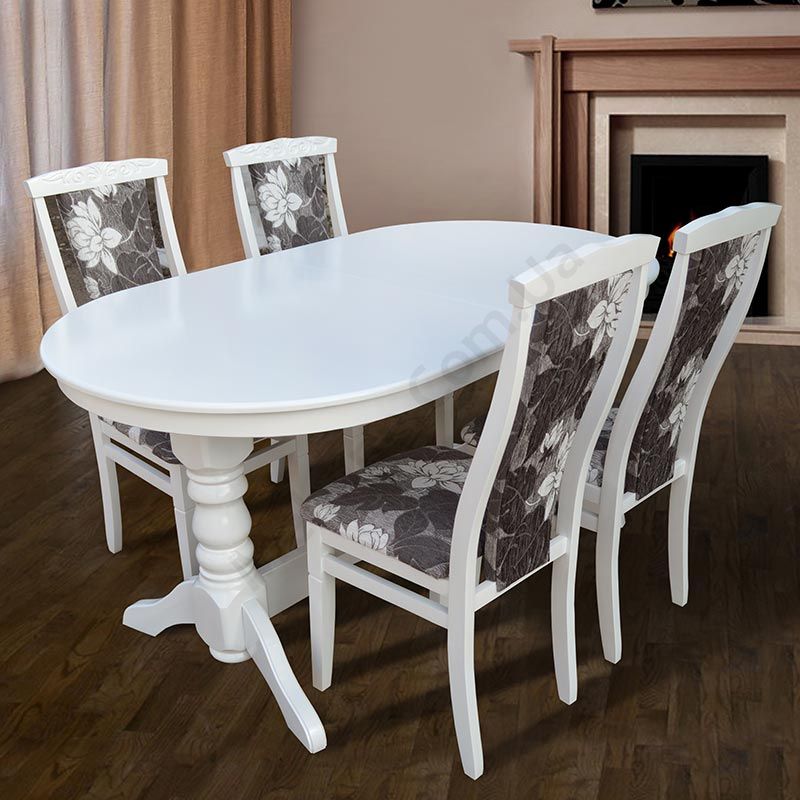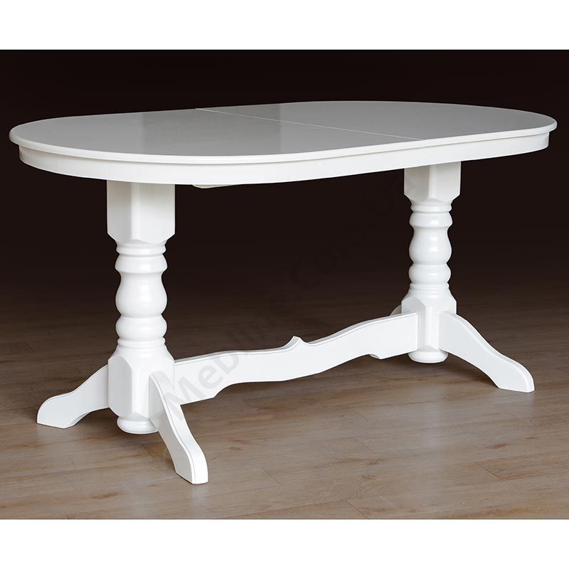 Розкладний обідній стіл із натурального дерева на фігурних ніжках у Білому кольорі.