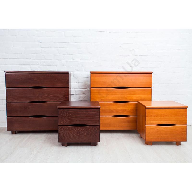 Дерев’яний комод на ніжках із чотирма висувними шухлядами.