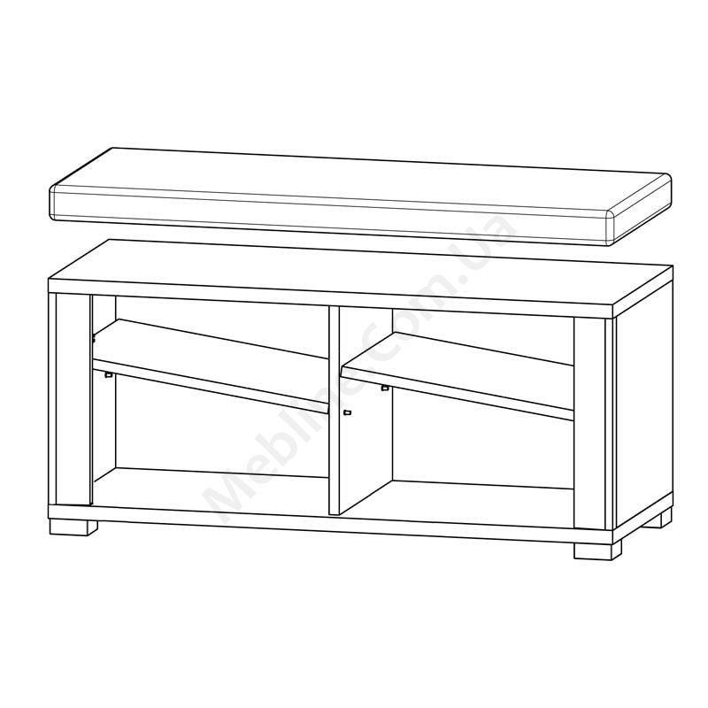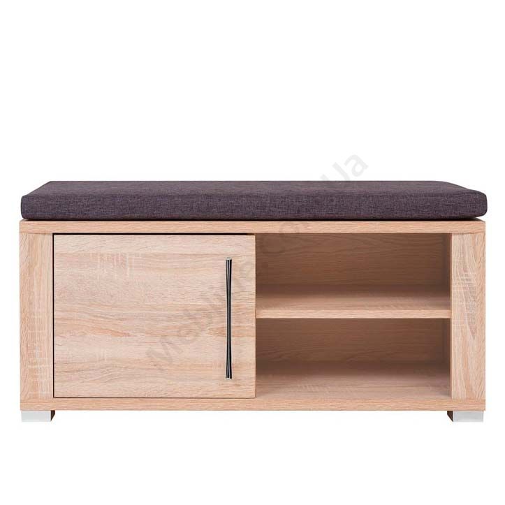 Тумба для взуття з м’яким сидінням, дверцятами та полицями.