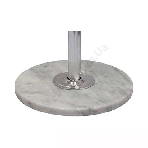 Металева підвісна вішалка сріблястого кольору з мармуровою основою та вигнутими гачками.