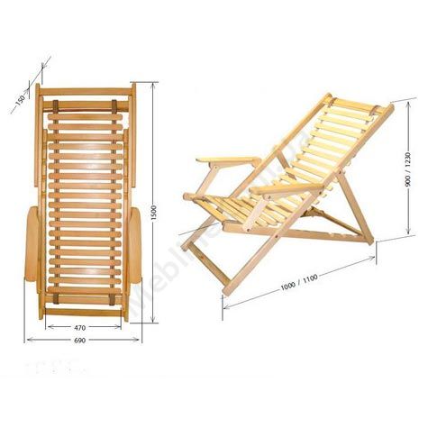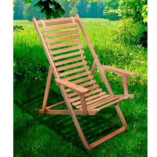 Розкладний шезлонг із натурального дерева з підлокітниками.