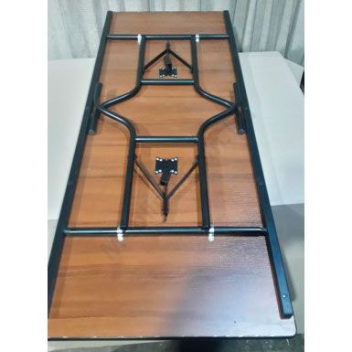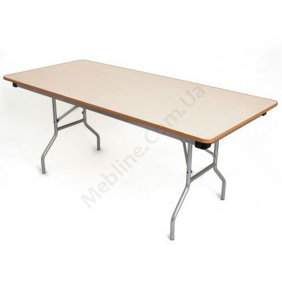 Прямокутний міцний складаний стіл на металевих ніжках.