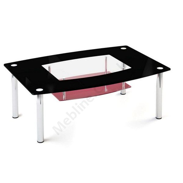 Прямокутний журнальний стіл зі скляною стільницею та поличкою.